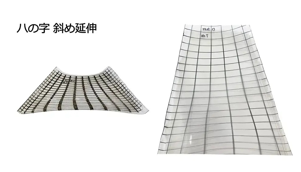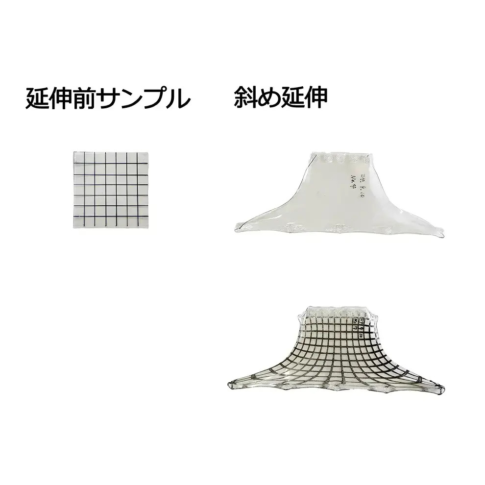 従来の一軸・二軸延伸に加え、ついに世界初* "斜め延伸" が可能になりました。