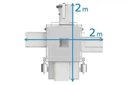 さらに、装置本体は制御ボックスを内蔵したままで2×2mのコンパクトサイズを実現しました。