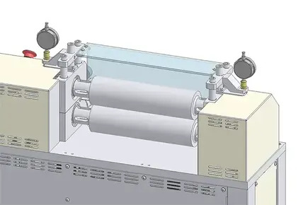 本機は上下の2本ローラ間で圧延する* 縦型の2本ローラです。